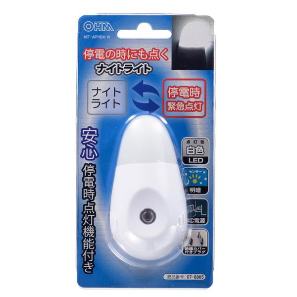 コンセントに差し込むだけで充電し、停電時に点灯する充電式ナイトライトです。明暗センサー付きで、周囲が暗くなると自動点灯、明るくなると自動消灯します。 製造国:中国 ※サプライヤー直送品 ご注文後2~3営業日後の出荷となります【商品名】オーム電機 OHM LEDナイトライト 充電式 明暗センサー ホワイト 白色LED NIT-APHB4-W