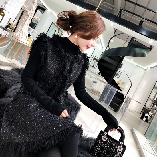 ドレス ワンピース 膝丈 ノースリーブワンピース インナー 長袖 ニット ハイネック セットアップ ツーピース シック パーティー お呼ばれイベント drgz1582