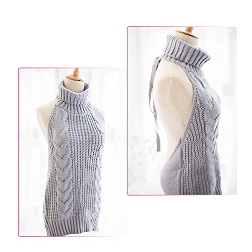 -. Title : (Ckeyin) レディース セーター 背中 バックレス ニット ハイネック バックリボン タートルネック ノースリーブ かわいい