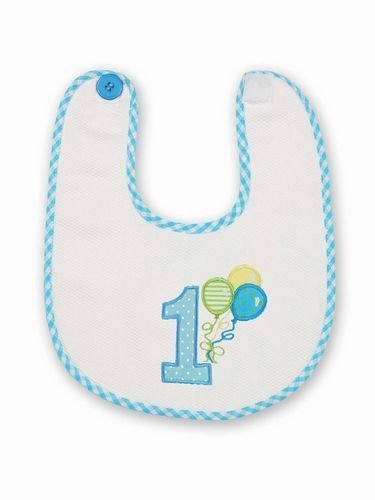 -. Feature : Bearington Baby Collection / Celebrate his 1st birthday with this special bib! / The bib has a velcro closure / Ages: 0-12 months / Dimensions: 10" W x 10" L
