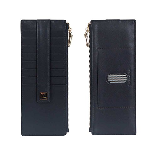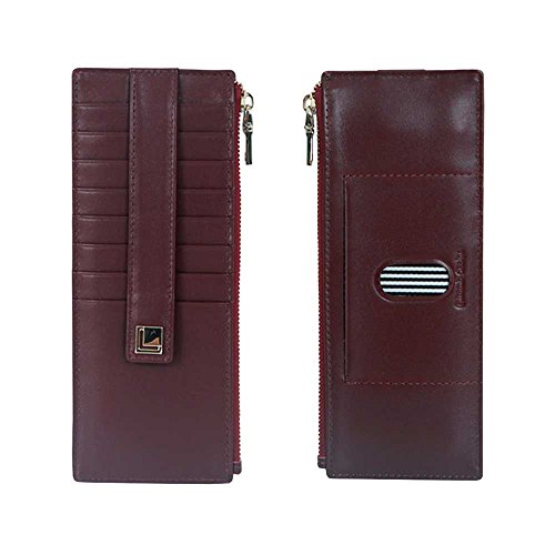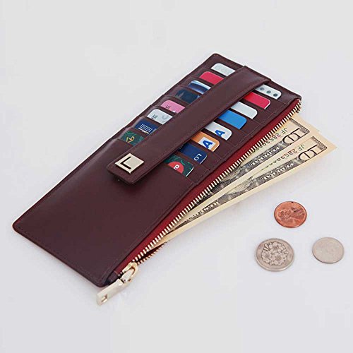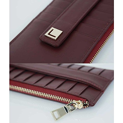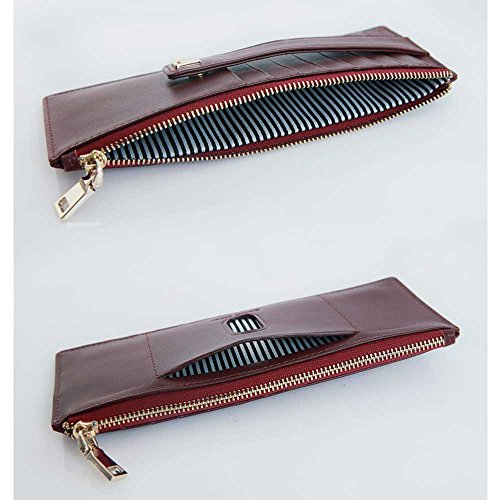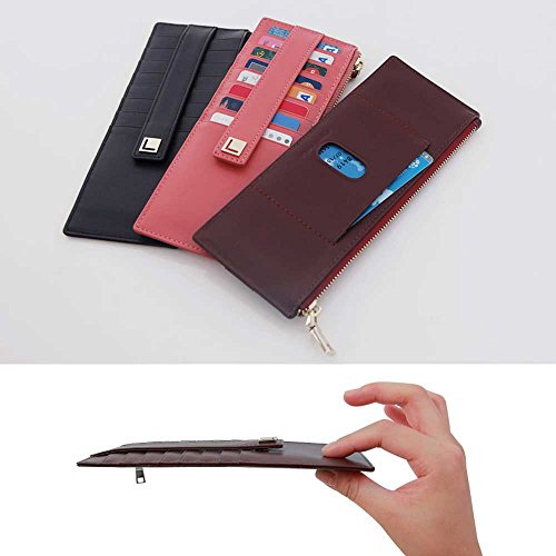 | Genuine Leather 9 Credit Card Slim Long Zipper Wallet Purse for Clutch Bag |