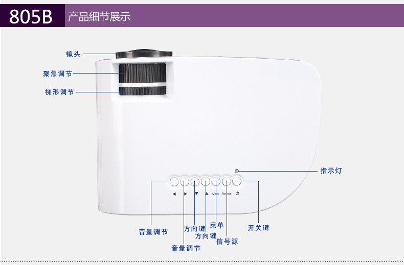 投影仪批发805B黑色家用微型投影仪 热销款LED高清3D便携式投影机标配含:投影仪主机+遥控器+电源线+三合一AV线+说明书+包装盒可读取U盘,移动硬盘,SD,HDMI VGA连接电脑,AV连DVD,机顶盒.