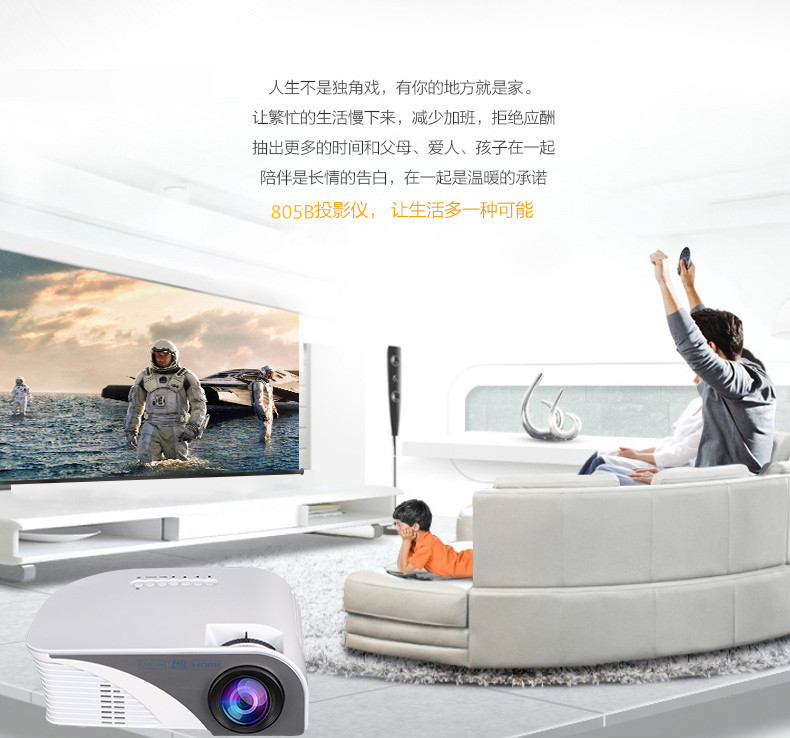 标配含:投影仪主机+遥控器+电源线+三合一AV线+说明书+包装盒