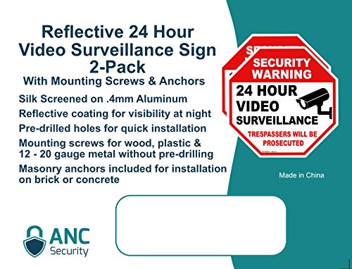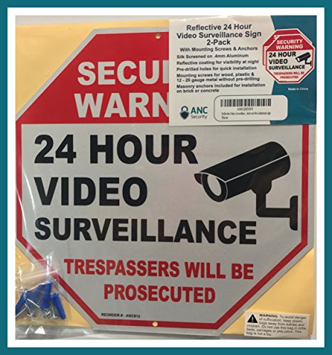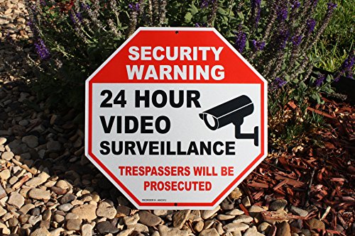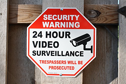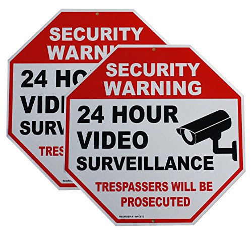 Get 2 Reflective Video Surveillance Security Sign With 4 SCREWS - No Trespassing sign - 12 x12 Octagon .4mm thick rust free aluminum Security Camera sign