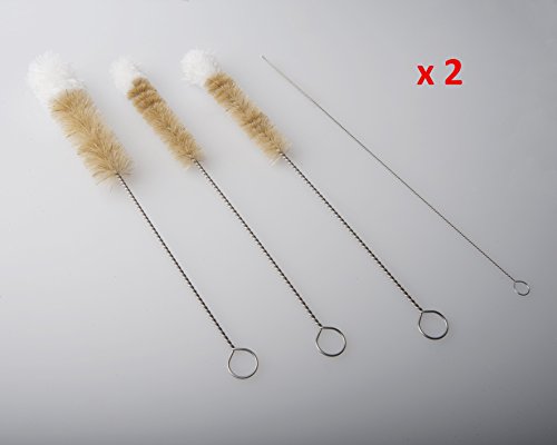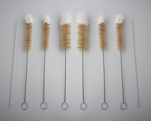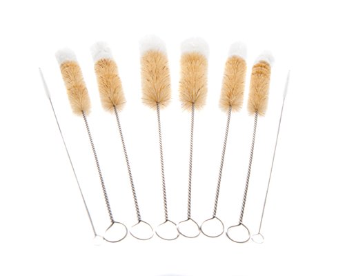 -. Feature : Light duty cleaning brushes for bottles and delicate glassware, flutes, china, crystal, vases, test tubes, pipes / Lots of cleaning uses around the home, kitchen, car, craft and hobby items, workplace / Natural bristles with a protective cotton tip. Stainless rust resistant handle, hanging loop / Set of 6. You get 2 large, 2 medium and 2 small head sizes. 10.8 inches overall length. / Two drinking straw cleaning brushes included as a bonus - ¼ inch diameter.