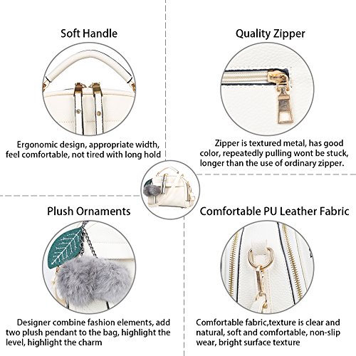 Lining Fabric: Polyester. Comfortable PU Leather Fabric: texture is clear and natural, soft and comfortable, non-slip wear, bright surface texture; Plush Ornaments: Designer combine fashion elements, add two plush pendant to the bag, highlight the level, highlight the charm.