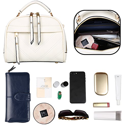 Size: 9.1 x 7.5 x 4.7(inch) (LxWxH) , Lined interior features: 1 x backwall zippered pocket, 1 x middle zip compartment and 2 x frontwall slip pockets; Exterior features 1 x back zip pocket.
