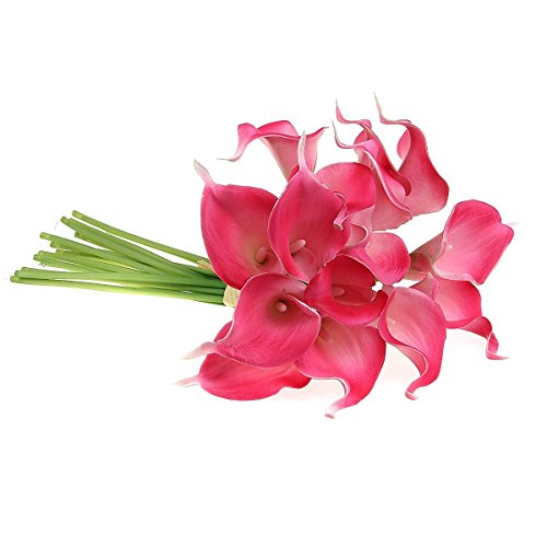 Ewandastore Artificial Calla Lily Bridal Wedding Bouquet 10 head Latex Real Touch Flower Bouquets Hot Pink