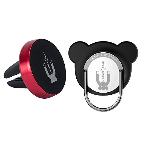AIQAA Universal Car Phone Holder Air Vent Magnetic Car Mount Holder Metal Material Phone Ring Grip for All Kind of Phones (Black)