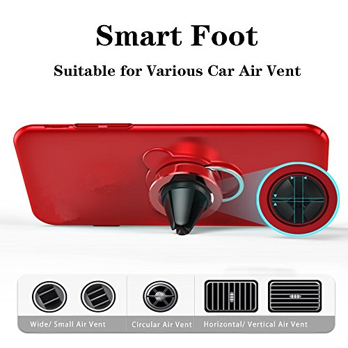 PRODUCT PRINCIPLE:This air vent magnetic car mount holder has two parts phone ring and the base.They are connected by magnetic force.Strong magnetism make them not easy to break away from each other.