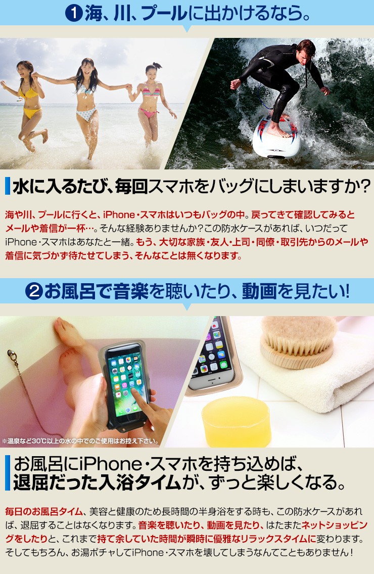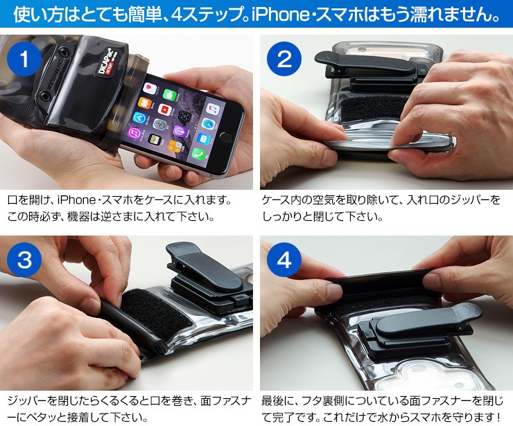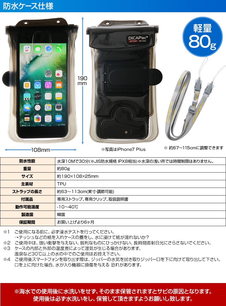 | 付属品 | 防水ケース本体、専用ストラップ、専用クリップ、日本語説明書 |
