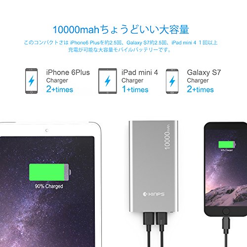 -. Title : Kinps モバイルバッテリー 大容量 急速充電【スマート充電技術】外付バッテリー 二つのUSB出力ポート Apple/Android適合性スマートテクノロジー搭載 [並行輸入品] 10000mah