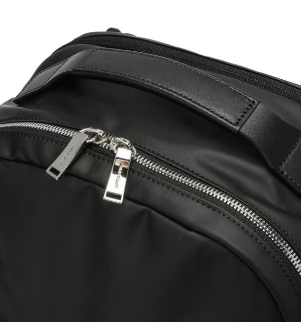노트북을 수납할 수 있는 분리된 별도의 수납 공간과 사이드 포켓의 이어폰 홀더, 등판 하단의 카드 포켓등으로