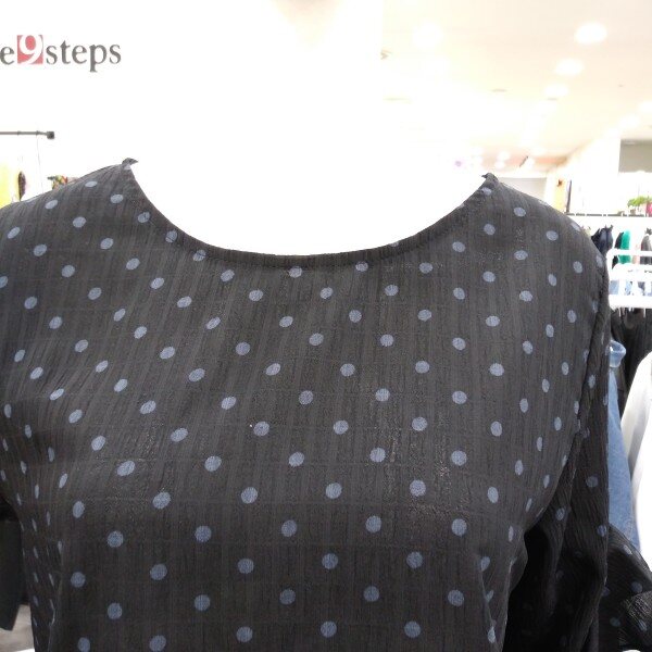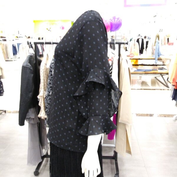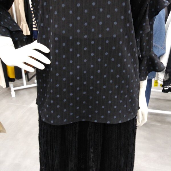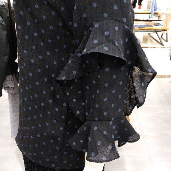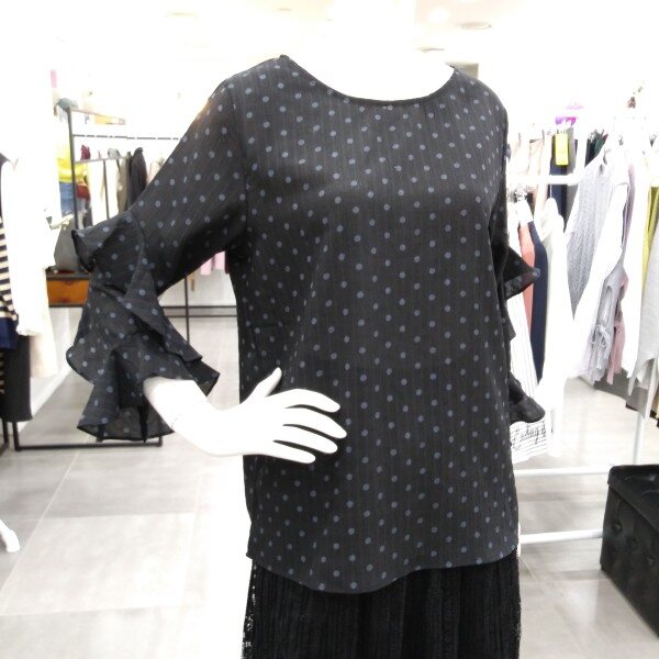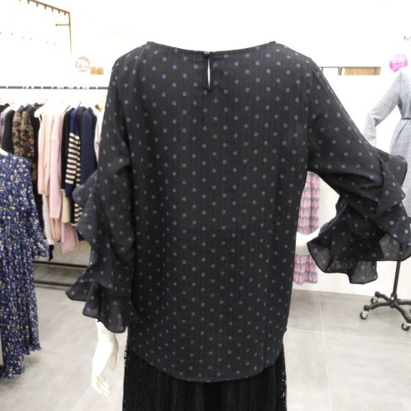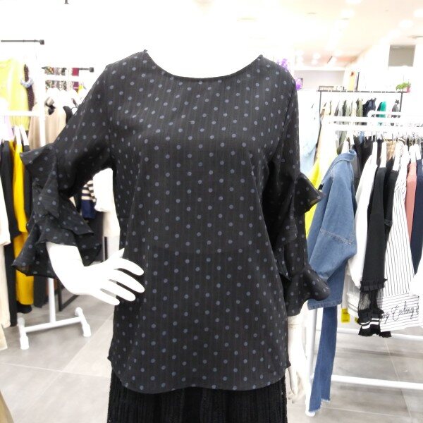 드트무늬 블라우스로 소매라인 프릴로 여성스런 느낌의 블라우스 입니다