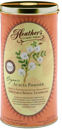 -. Binding : Health and Beauty -. Brand : Heather's Tummy Care -. EAN : 0180616000042 -. Feature : A medical food for the dietary management of IBS symp and ideal bowel stability. 100% organic Acacia senegal fiber powder, NOT low grade Acacia seyal. / As part of the diet, helps regulate bowel motility to relieve IBS abdominal pain, diarrhea AND constipation. Certified organic by QAI and kosher certified. / Pure organic soluble fiber with a prebiotic effect that increases good gut flora. Slows colonic fermentation, decreasing gas and bloating. / No IBS triggers: no psyllium, citric acid, insoluble fiber, artificial sweeteners, gluten, or FODMAPS. Never thickens. No choking risk. Dissolves in liquids or moist foods, or cook with it! / 100% acacia senegal, NOT low grade acacia seyal. Natural, unhydrolized, no additives, colors, flavors, or sweeteners. No taste, odor, color, no grit. / A medical food for the dietary management of IBS symp and ideal bowel stability 100% organic acacia senegal, not low grade acacia seyal / As part of the diet, helps regulate bowel motility to relieve IBS abdominal pain, diarrhea and constipation; Certified organic by QAI and kosher / Pure organic soluble fiber with a prebiotic effect that increases good gut flora; Slows colonic fermentation, decreasing gas and bloating / No IBS triggers: no psyllium, citric acid, insoluble fiber, artificial sweeteners, gluten, or fodmaps; Never thickens; No choking risk; Dissolves in liquids or moist foods, or cook with it / 100% acacia senegal, not low grade acacia seyal; Natural, unhydrolized, no additives, colors, flavors, or sweeteners; No taste, odor, color, no grit -. IsAdultProduct : 0 -. Label : Heather's Tummy Care -. Manufacturer : Heather's Tummy Care -. Model : SUPLMTS_ACACIA-CAN -. MPN : SUPLMTS_ACACIA-CAN -. NumberOfItems : 1 -. PackageQuantity : 1 -. PartNumber : SUPLMTS_ACACIA-CAN -. ProductGroup : Health and Beauty -. ProductTypeName : HEALTH_PERSONAL_CARE -. PublicationDate : 2013-04-30 -. Publisher : Heather's Tummy Care -. Size : 1 lb. -. Studio : Heather's Tummy Care -. Title : Heather's Tummy Fiber CAN Organic Acacia Senegal (16 oz) for IBS -. UPC : 180616000042