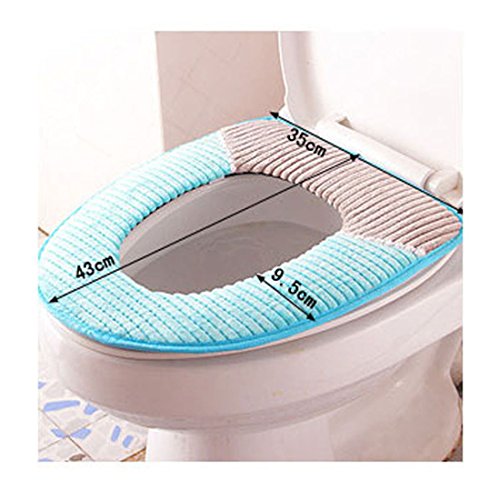 Corduroy Toilet Seat Cover Toilet Seat Cushion Cushioned Toilet Seat Warm and Soft Comfortable Good Looking(2 pack,17"x14", Blue)
