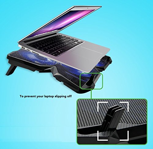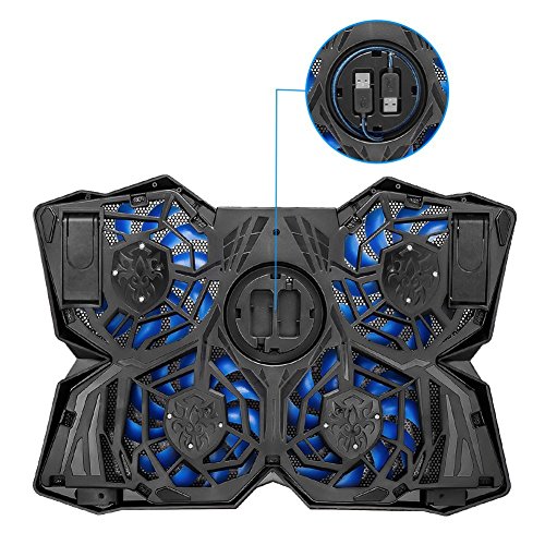 -. Feature : Whisper Quiet and Superior Cooling: 4 large 125 mm fans provide optimal air flow at barely audible sound, no distraction at all. / Extra USB Ports: It comes with an extra USB port, ideal if you often use peripherals like external keyboard, mice and hard drive. / Adjustable height setting:allow you to work or play on your laptop for prolonged periods without straining your neck, back and wrist. Great at home or in the office. / Slim, Light Weight, and Portable