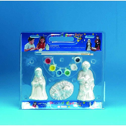 Paint Holy Family 5 inch Kids Christmas Nativity 3 Piece Figurine Plus Art Set