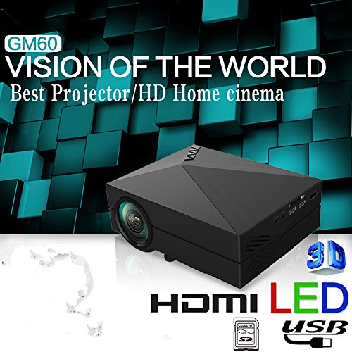 60" Portable Mini Hd LED Projector Cinema Theater,Support PC Laptop HDMI VGA Input and SD + USB + AV Input,for iphone,galaxy,laptop,mac.with Remote Control *White*,Only for home