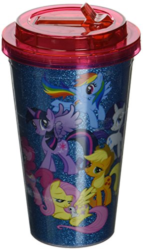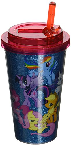 Silver Buffalo MLP2184G Hasbro My Little Pony Friendship is Magic Glitter Plastic Flip Straw Cold Cup, 16-Ounces