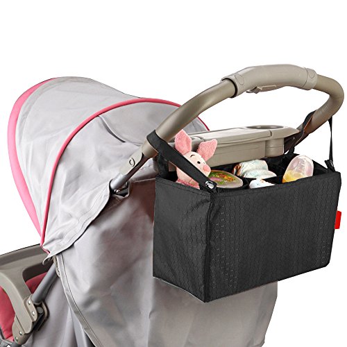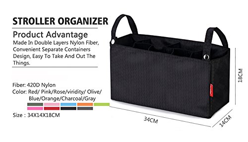 This Uphome stroller organizer is made of double layers waterproof 420D nylon fiber and it looks durable enough to last a long time. The organizer also easily fits most strollers. It's easy to clean and easy to install/attach.Convenient separate containers design with 7 pockets makes it easy to take and out things. With Uphome stroller organizer, you will be able to store all of your important belongings safely and efficiently.