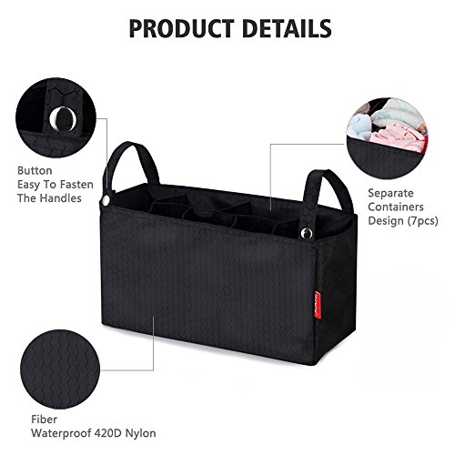 Uphome Fashion Multifunction Travel Portable Baby Diaper Bag Insert Nappy Storage Bag Stroller Organizer with 7 Separate Pockets (Black)