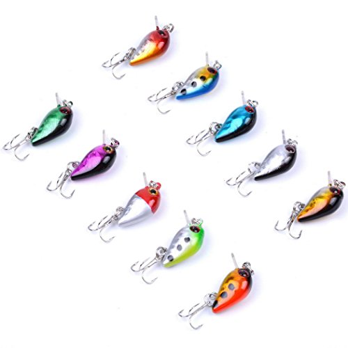 10pcs/lot Mini fishing lures 10 colors Fishing bait 2.6cm/1.6g fishing tackle #10 high carbon steel Treble hook They create life-like swimming actions in water! smooth and rapid action,bright colors 3D eyes make it powerful to attract big fish. The lures are made of hard plastic lures with various weight to dive in the water with differnt depth as well as to fit for freshwater and saltwater. We have various fishing lures for top, mid, bottom water. You Can Find More Fishing Lures from Aorace Store on Amazon.