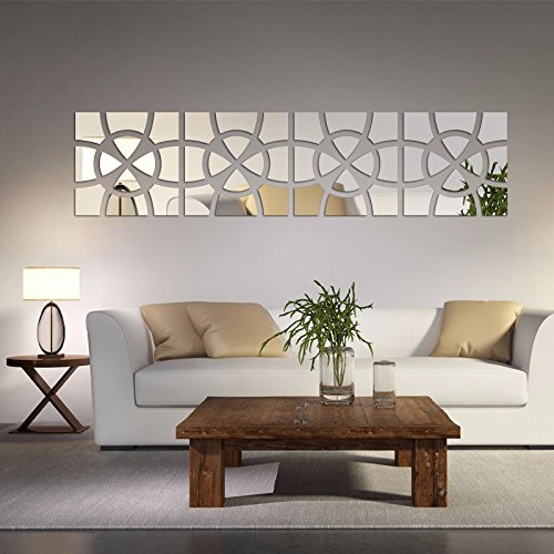 Alrens(TM)48pcs/Set Geometric Art Mirror Effect 3D Wall Sticker TV Backdrop Door Decorative DIY Painting Acrylic Sticker Living Room Home Decor 30120cm