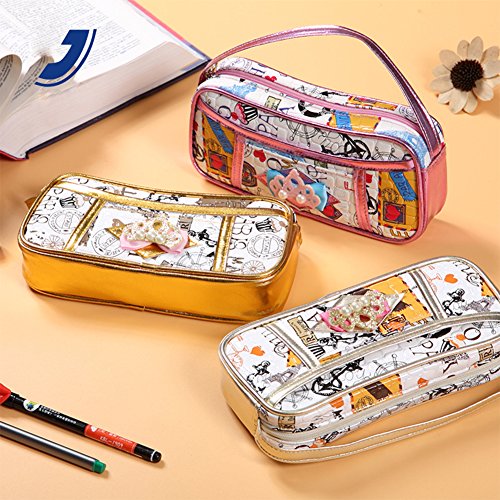 Pencil Case - PU Leather Handy Zipper Pen Bag Pencil Holder Cosmetic Makeup Pouch