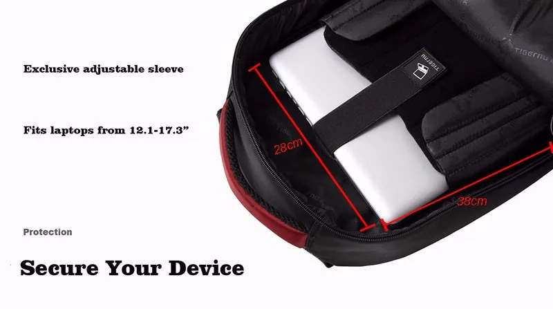 T-B3029 Laptop compartment size: 28*38cm,please check your laptop size.