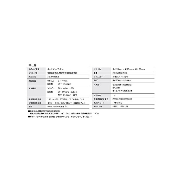 원본상품명: パルスオキシメ?タ オキシマン ISO準? S-114