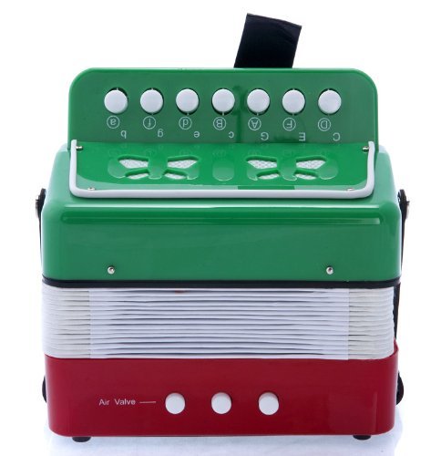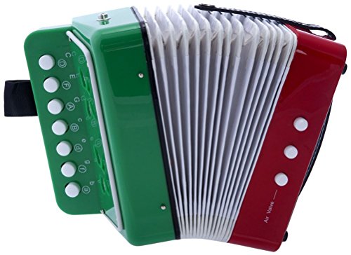 This adorable children's Accordion is ideal for toddlers and kids. This Child's Accordion features 7 treble buttons and 2 bass buttons. This toy Accordion makes a wonderful gift for that special child and is a great value for the money!The accordion projects a nice warm accordion sound that's sure to entertain! Mexican Flag Pattern7 Treble Buttons2 Bass Buttons 0 |