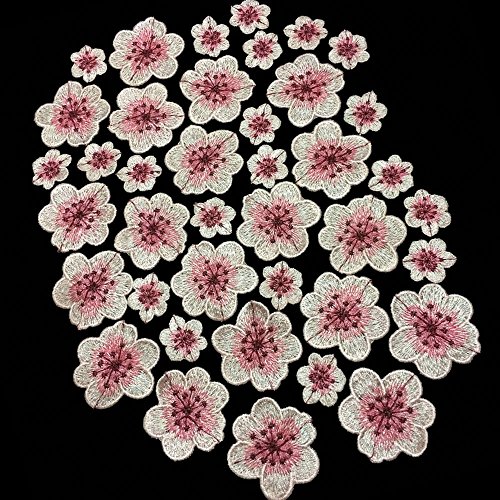 40 Piece Plum flower embroidery Applique Patch Garment Accessories Pink DIY Wedding Dress Bag curtain Decorative (Pink)