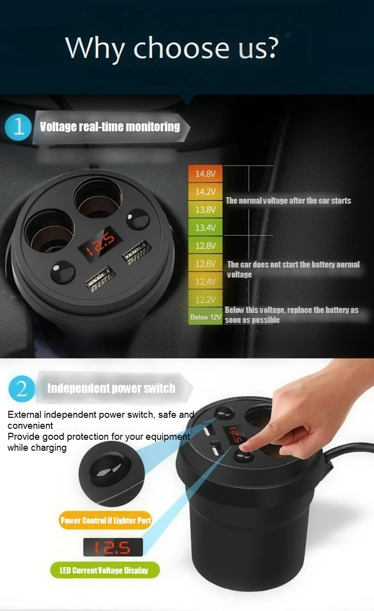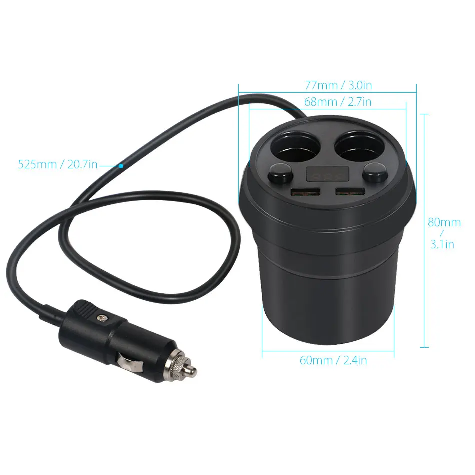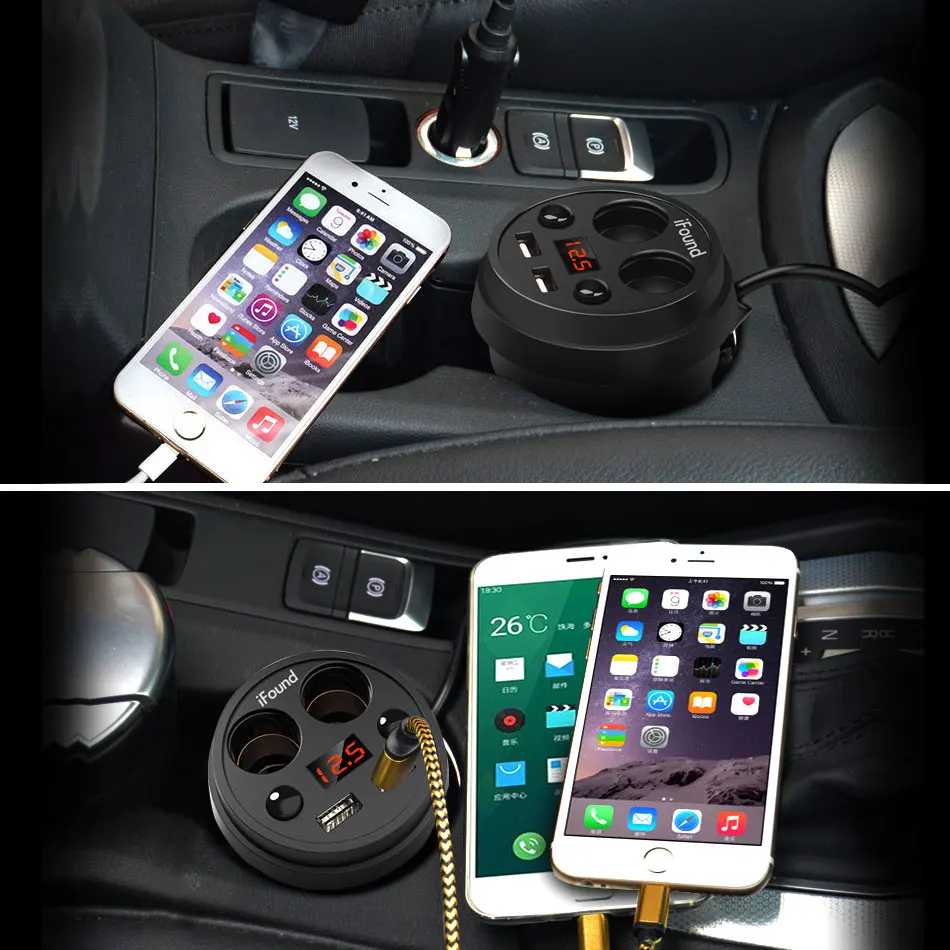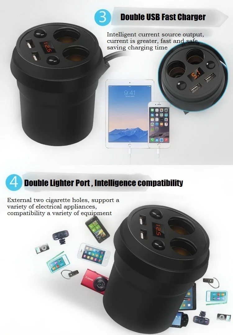Interface Charger:Two USB Port+Two Cigarette Lighter