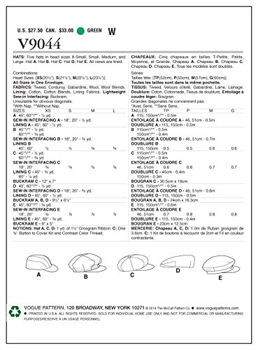Vogue Patterns V9044 Hats in Five Styles by Patricia Underwood, Size XS-L