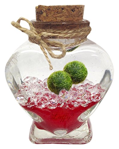 Luffy Marimo Ball Gift Set: Marimo Plant Symbolizes Love - Includes a Heart Shaped Bottle - Increase your Love with this small DIY project (packaging material included) - Perfect for someone Special