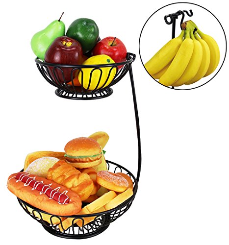 ESYLIFE 2 Tier Fruit Basket with Banana Hanger Multifunctional Rack for Vegiess, K-Cups, Snacks