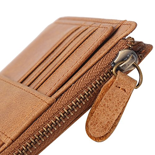 -. Title : Mens Genuine Leather Slim Cowboy Retro Wallet Card Case Coin Purse for Zipper