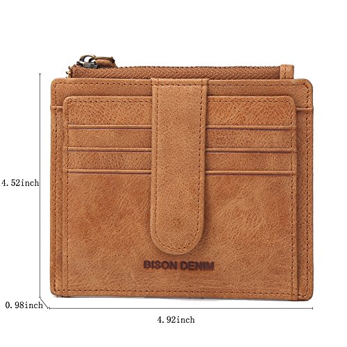 -. Feature : ✔ GENUINE LEATHER - Made with the Finest Full Vintage genuine leather,looks classy and very slim, Wallet Size: 4.56" in. x 0.92" in. .4.92" in. / ✔ ULTRA SLIM - Ultra slim, minimalist design for front or back pocket.Holds 7 cards,2ID windows plus US coins. / ✔ P.R.IVACY-Two ID Windows is a front side of the purse. With buttoned up. Having more P.R.Ivacy. You can put your spouse or family photos. Or is an important identification. / ✔ [Bison Denim]is a trademark registered in the US, UK and other countries. Any unauthorized sellers will certainly bear the legal consequences of Copyright Infringement.