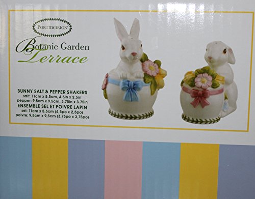 Portmeirion Botanic Garden Terrace Bunny Salt & Pepper Shakers - Salt 4.5" x 2.5", Pepper 3.75" x 3.75"