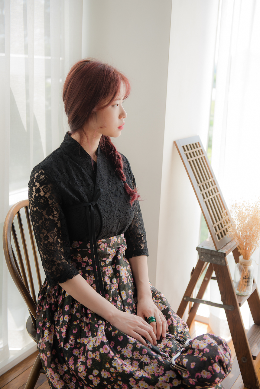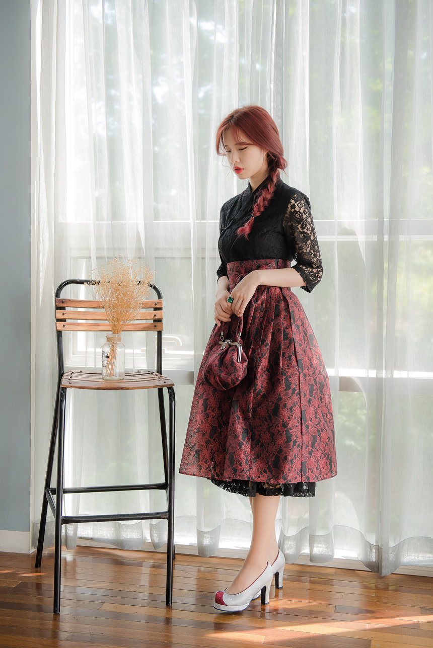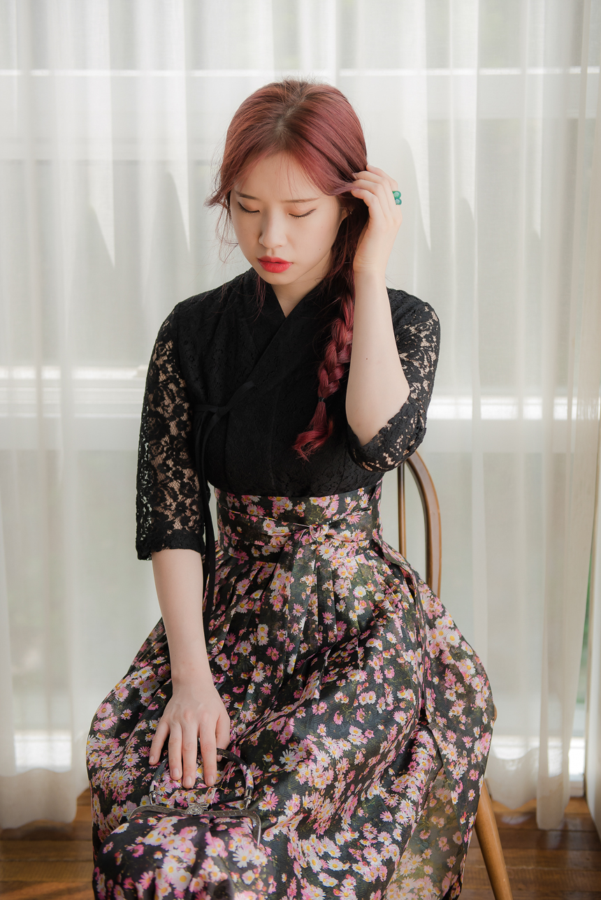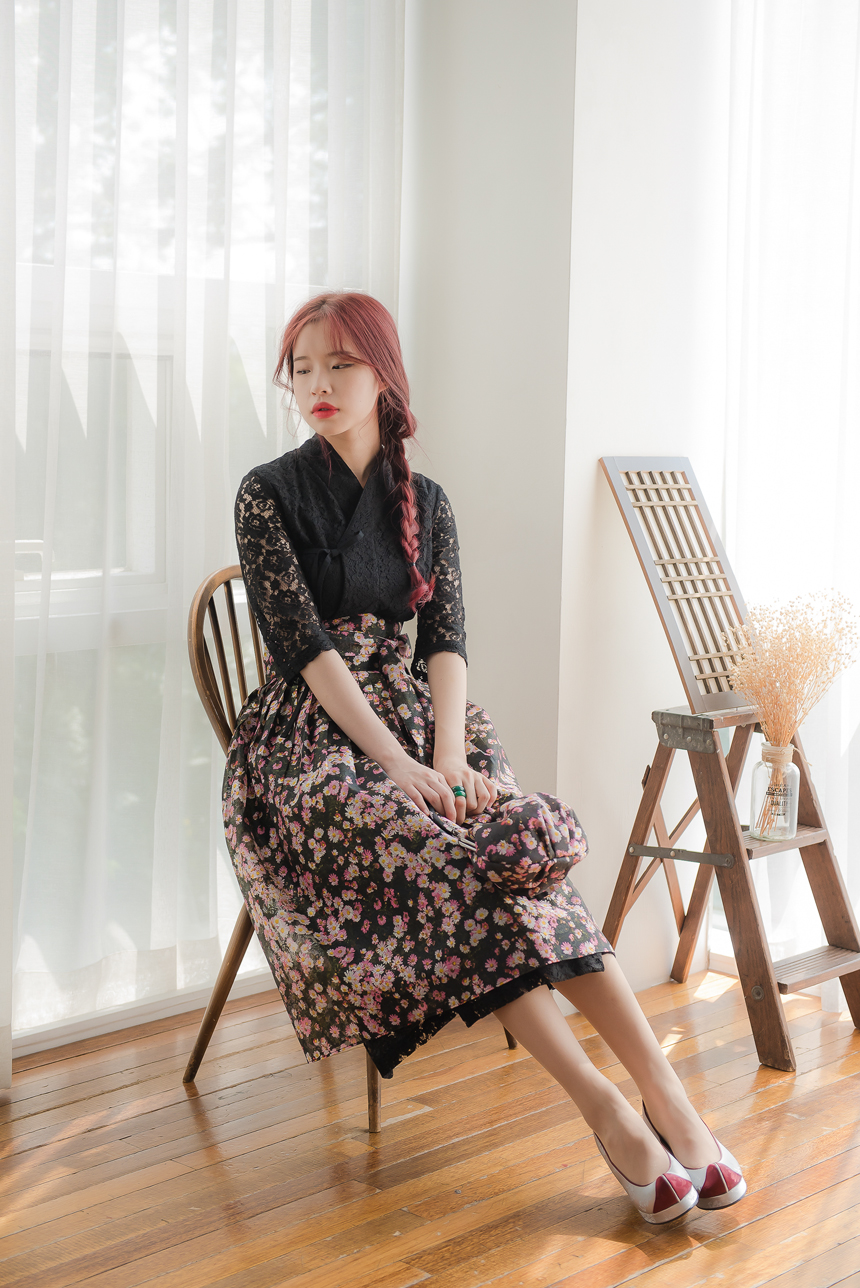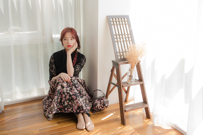 *아래사진은 꽃닮 시스루 덧치마 블랙과 함께 코디한 참고컷입니다.