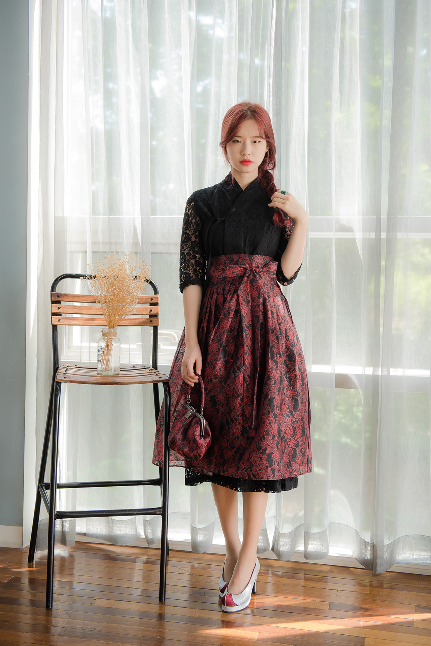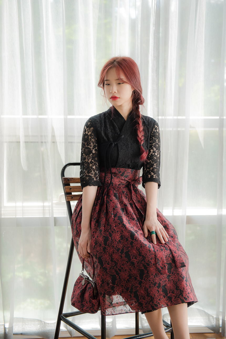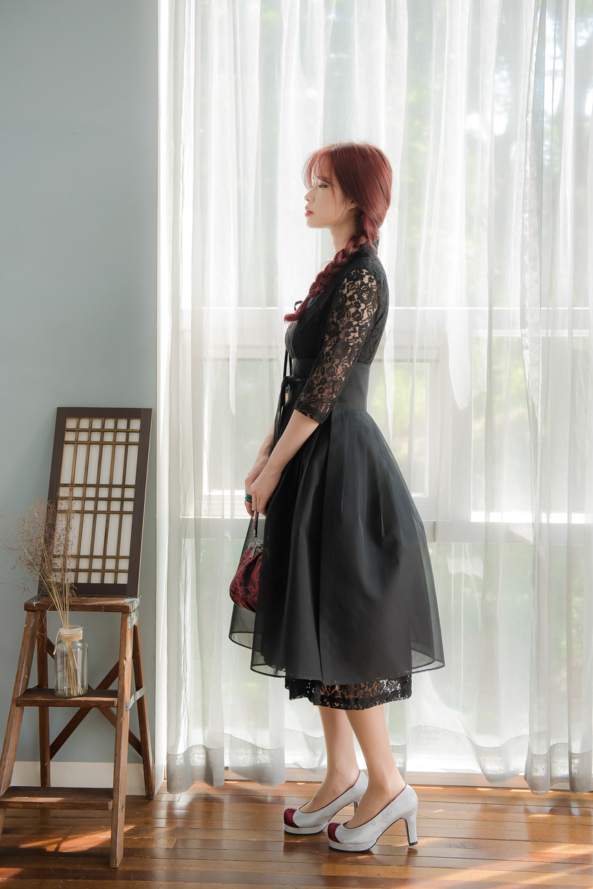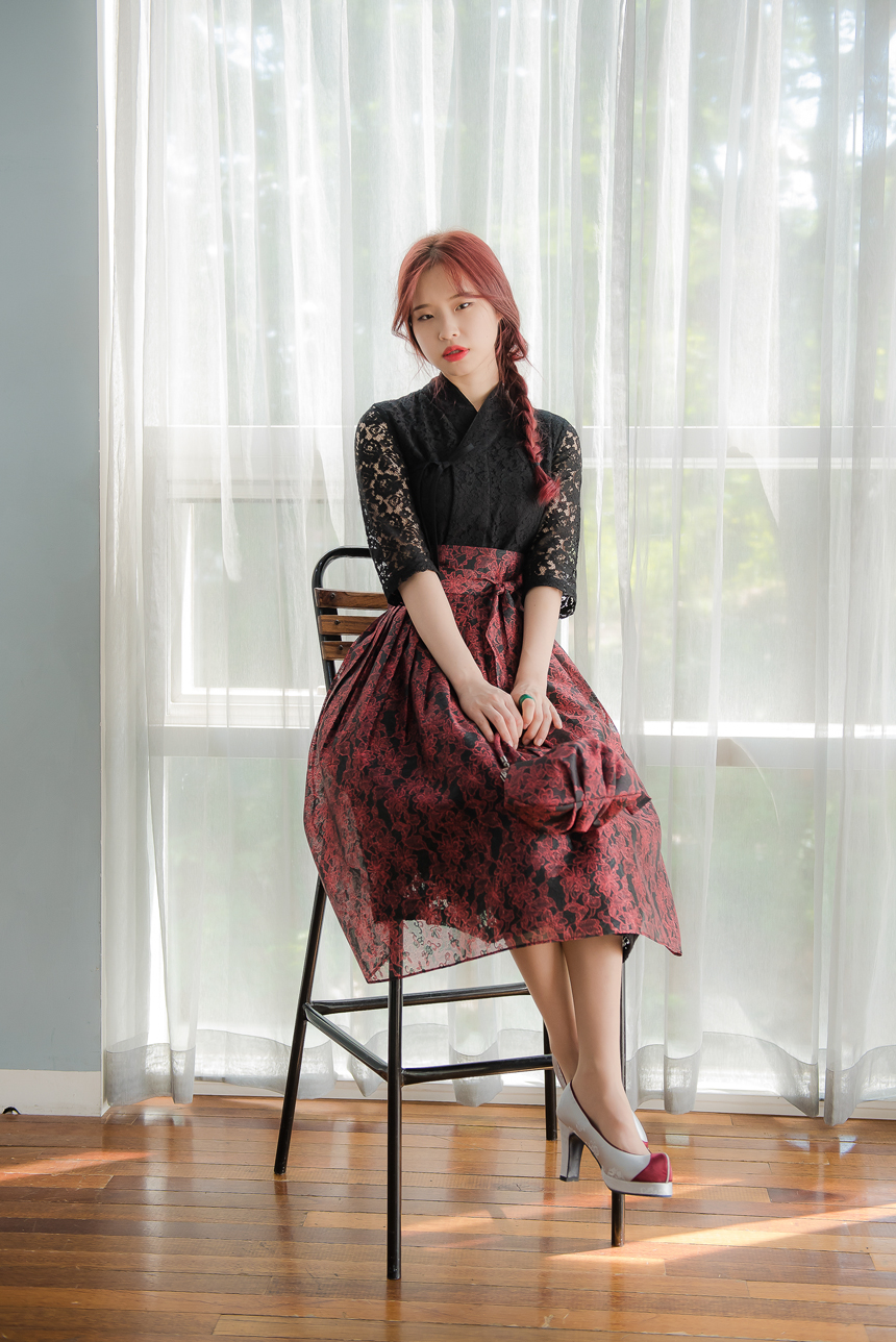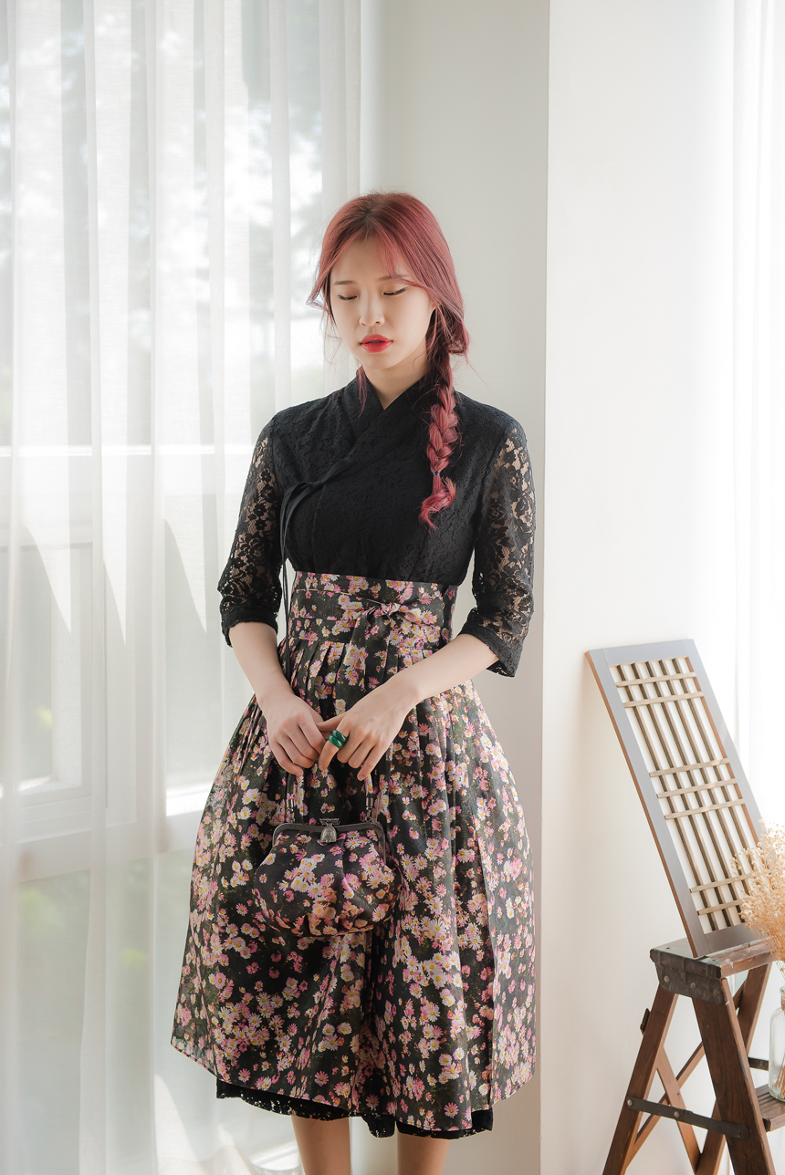 *아래사진은 꽃닮 시스루 덧치마 블랙과 함께 코디한 참고컷입니다.