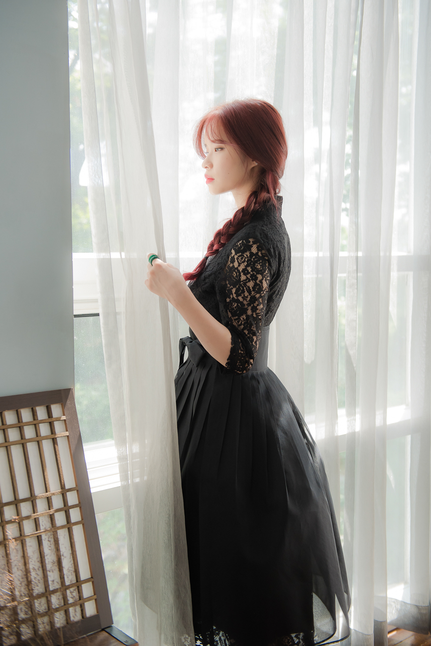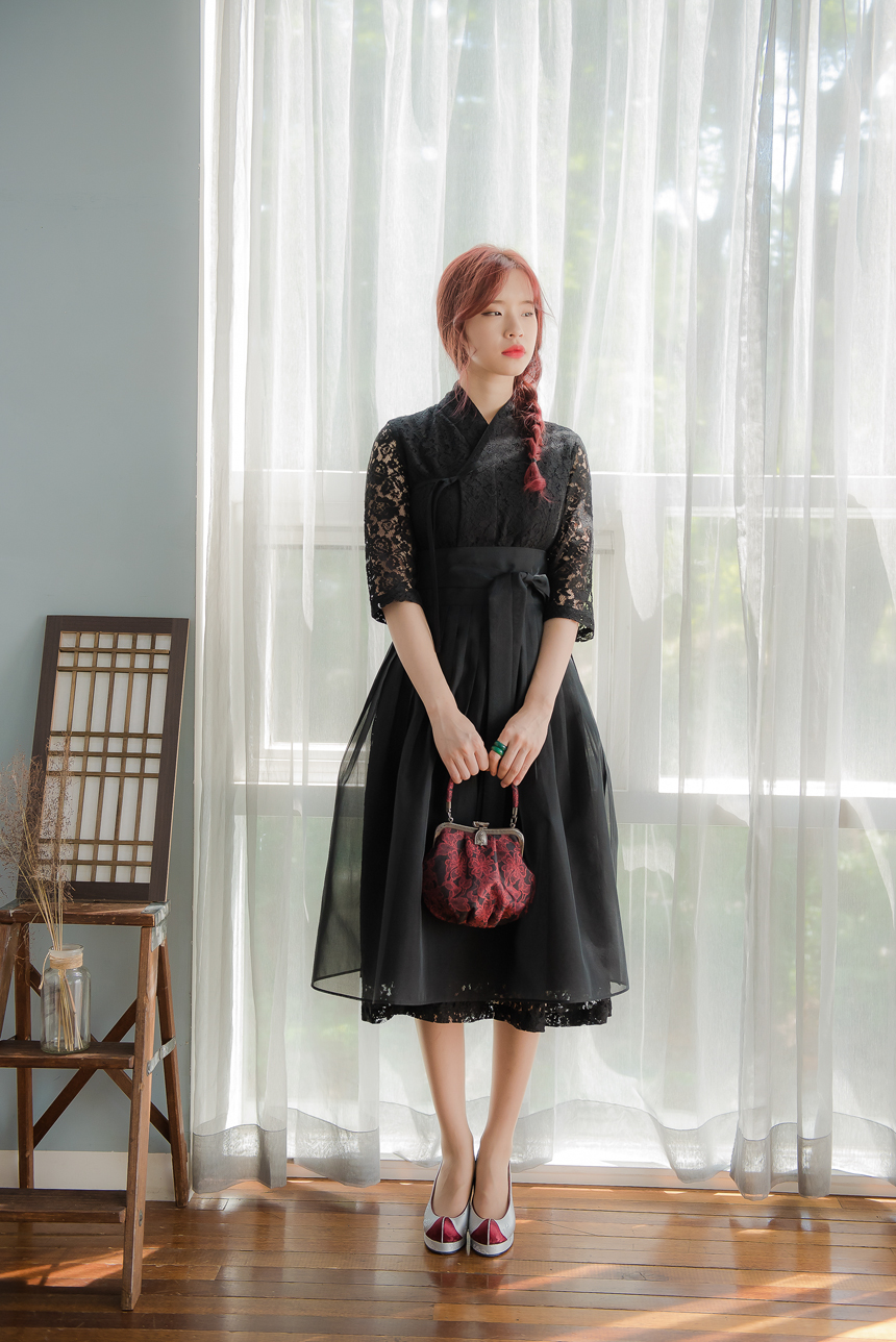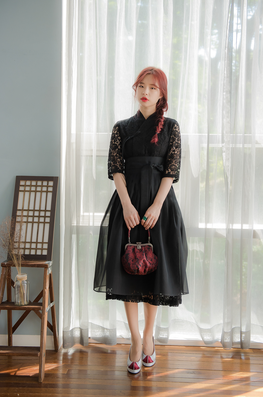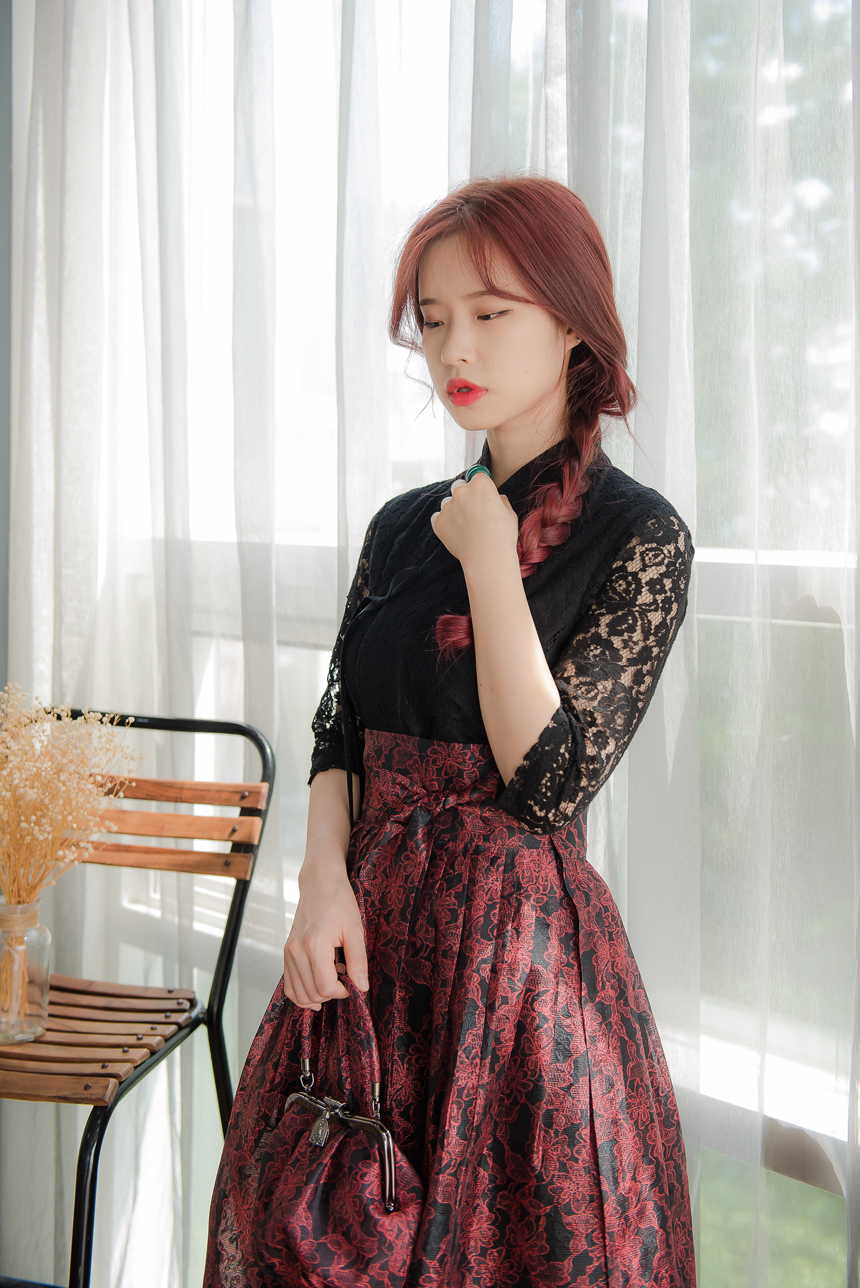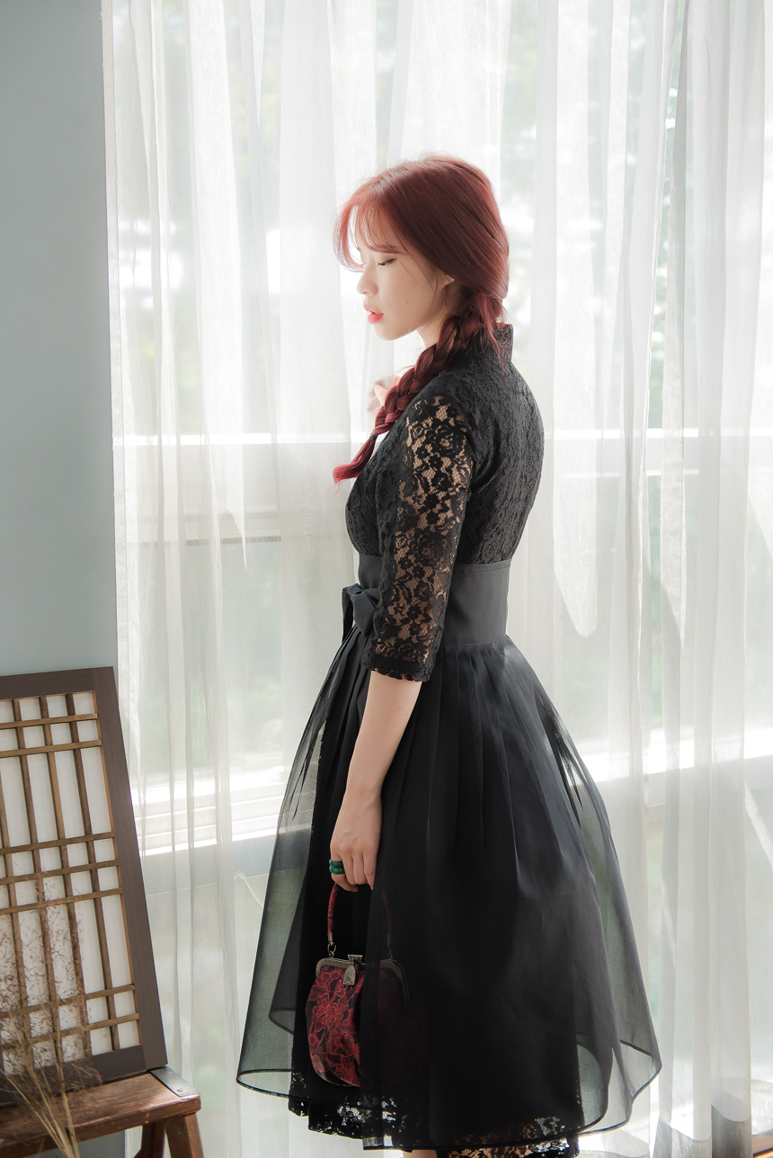 *아래사진은 꽃닮 시스루 덧치마 블랙과 함께 코디한 참고컷입니다.