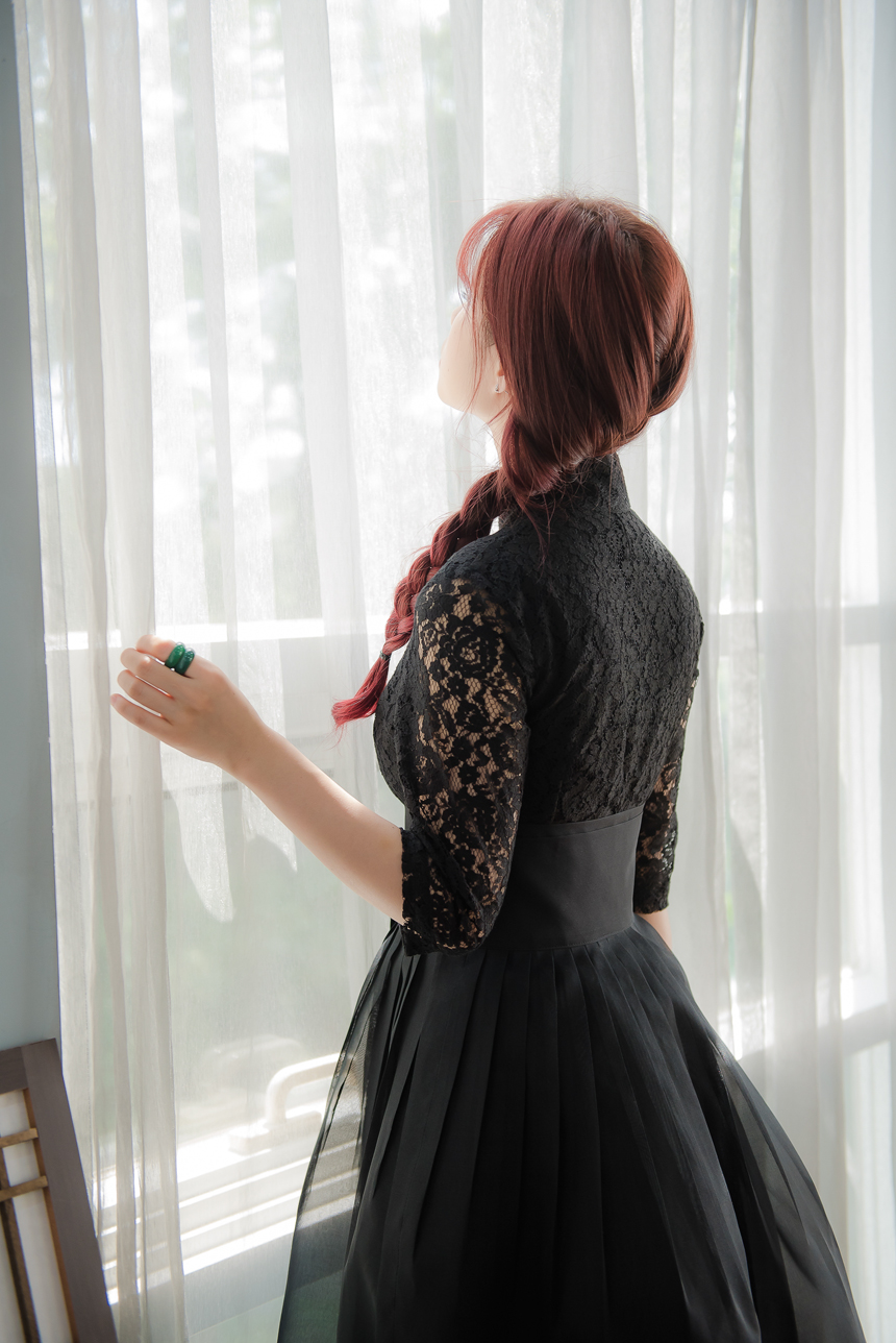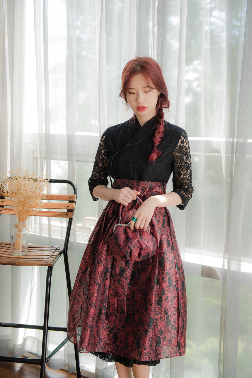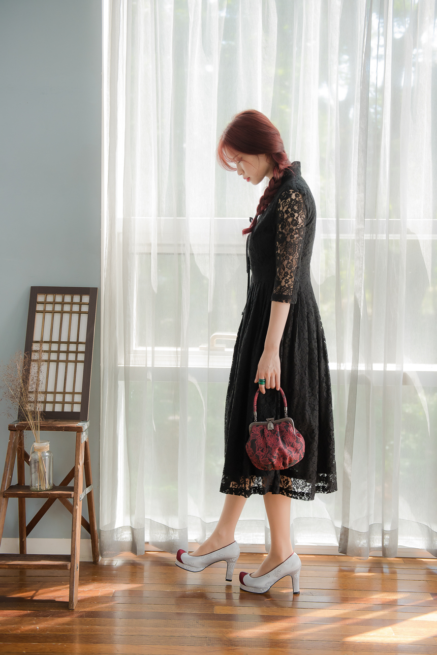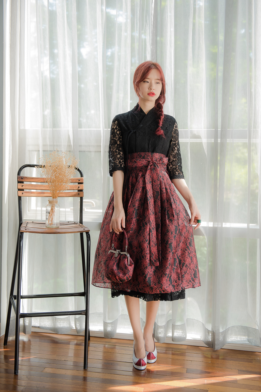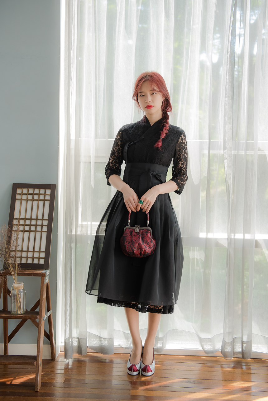 *아래사진은 꽃닮 시스루 덧치마 블랙과 함께 코디한 참고컷입니다.