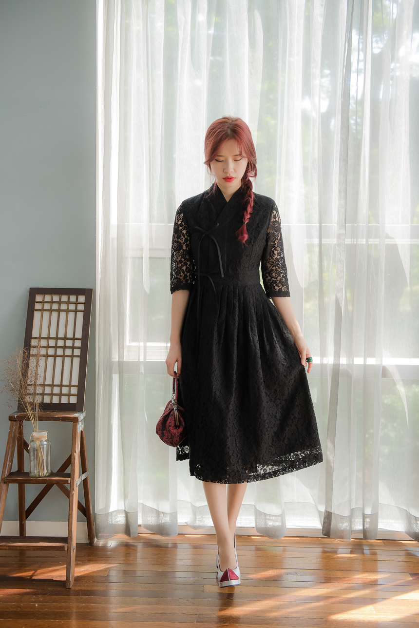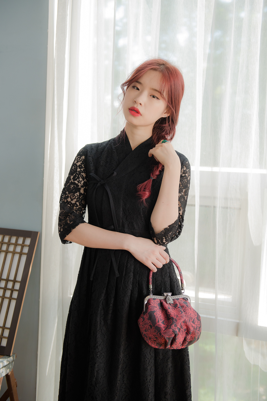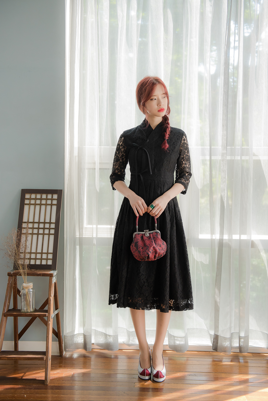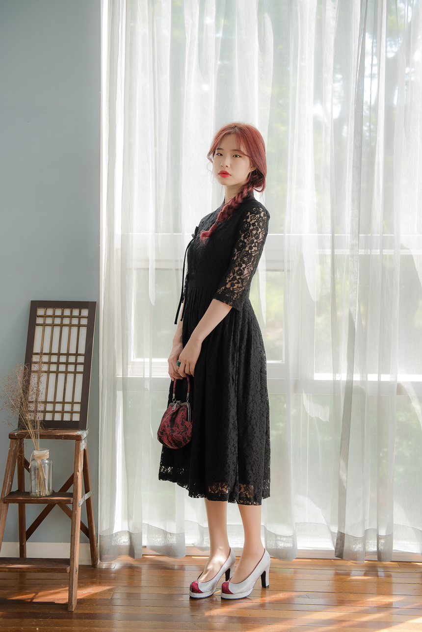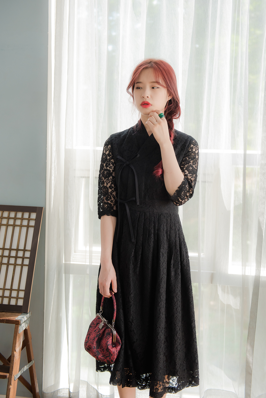 꽃닮의 베스트상품! 시그니쳐 디자인 레이스 철릭원피스가 시즌에 맞는 7부로 새롭게 디자인되었습니다.