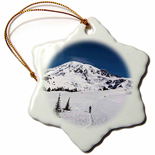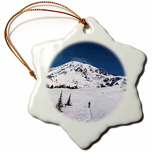 3dRose orn_148324_1 USA Washington, Mt Rainier. Hiker on Trail to Camp Muir-Us48 Mfr0039-Mfr-Snowflake Ornament, 3-Inch, Porcelain
