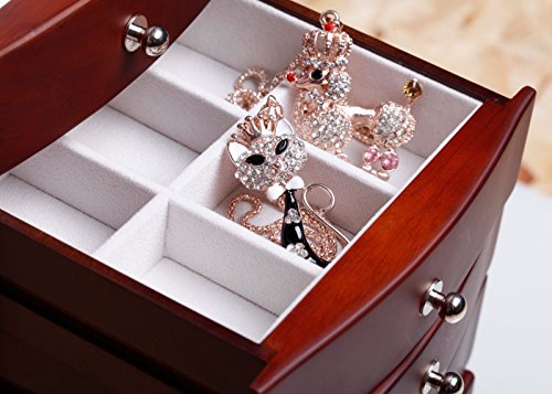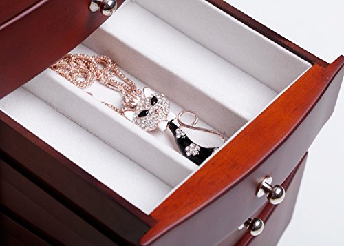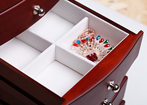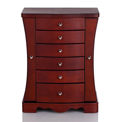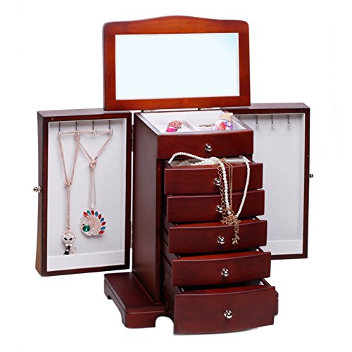 -. Brand : Rowling -. Feature : - material: Wood+Velvet lining+High quality flannel interior / - Size: approx. 11"L x 6.75"W x 14.5"H, Weights: 5.5 kg / - 2 side necklace compartments with 4 necklace hooks on each side / - 5 felt-lined drawers and 2 swing out side doors with hooks / - Safe package: 1pc/pp bag and into a thick corrugaled carton as the gift box. -. NumberOfItems : 1 -. PackageQuantity : 1 -. ProductGroup : Art and Craft Supply -. ProductTypeName : ART_AND_CRAFT_SUPPLY -. Size : 26.5x17x34.5 cm \10.5x7x13 inch (LxWxH) -. Title : Rowling Modern Wooden Jewelry Box Organizer with Mirror Jewelry Chest MG012