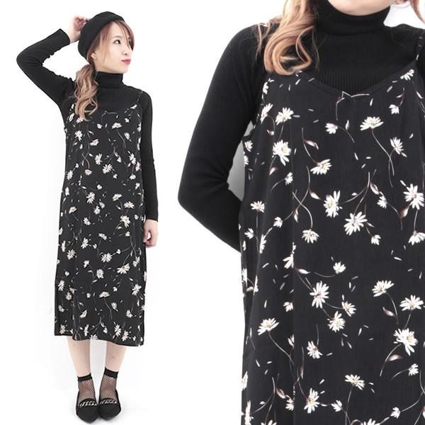 | ヴィンテージ フラワー 花柄 キャミソール ワンピース ミディアム丈 黒 ブラック 【ワンピース 花柄 ミディアム丈 レディース 女性 ロンデルブラック キャミワンピ ノースリーブ 重ね着に 袖なし 肩だし one-piece 春夏】 | |