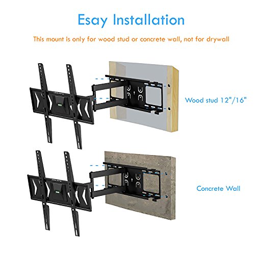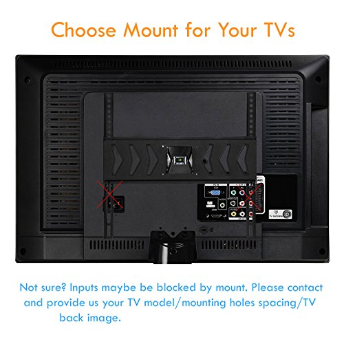 First, please check the weight of your TV should be less than 66lbs (30kg); Next, please look at the back of your TV, check VESA (mounting hole patterns) and whether inputs maybe be blocked by mount; Finally, please check whether your wall fits for wood studs or solid concrete. It can't be used on drywall.