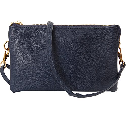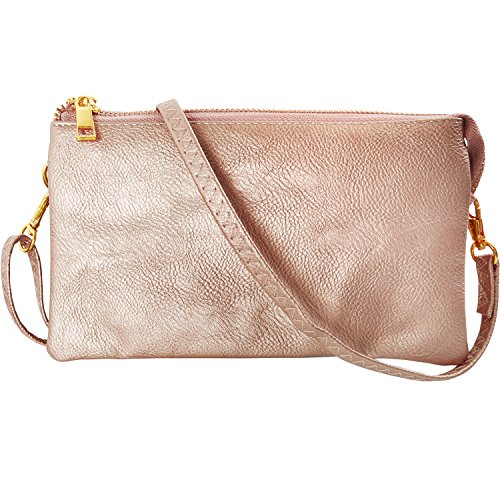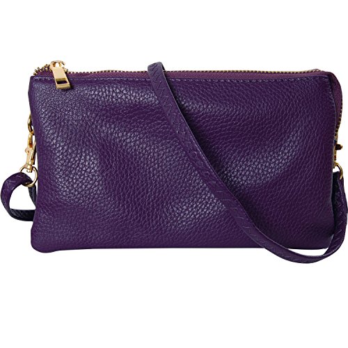 Our vegan leather convertible wristlet crossover bag is just large enough to hold a mini wallet, slim checkbook, and cellphone case, making it the perfect medium size day-to-night satchel. With multiple interior pockets, it's a perfect organizer for your essentials, keys, phone, makeup staples, and even a passport for travel. Gold hardware and beautifully textured soft vegan leather will make this your go-to pocketbook. Wear it as an evening clutch or cross body messenger-style. It is a customer favorite and popular gift choice for Valentines Day, the holidays, bridesmaids, birthdays, or to have for yourself in every color! Dimensions: 5" x 8".Feature